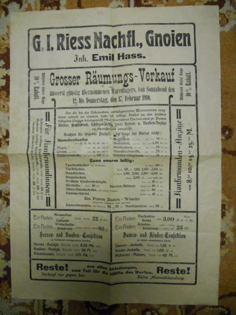 Räumungsverkauf in Gnoin, Wörter wie „Ganz enorm billig und Resterampe“ waren normal Schreibe eine Antwort Hier ANKAUF Emailleschilder Blechschilder Automaten Unsere Angebote und Tagesauktionen Werben auf schilderjagd.de Hier eine Echtheitsanfrage stellen