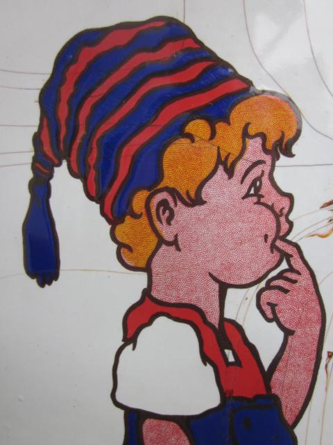 Hey die Knaben tauchen derzeit überall auf – aktuell 3 bei ebay und weitere 3 heute auf dem Flohmarkt in Düsseldorf gesichtet – alle in Zustand „na ja“ –  hab mir mal eins für 35 Euro mitgenommen – Motiv is ja noch ganz gut erhalten – putzen bringt nicht wirklich so viel