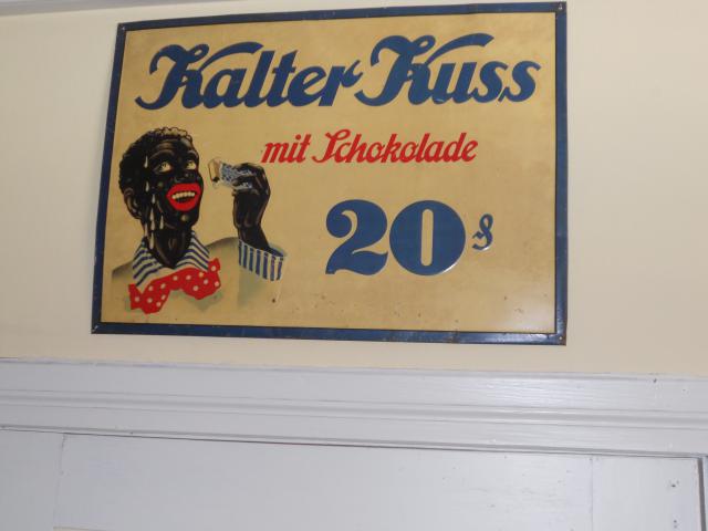 Übrigens der schwarze Ami hat auch hier seine bedeutung, wahrscheinlich feiert er gerade in Missessippi am 14 Juli an dem tag kann es richtig heiss sein, den unabhängigkeitstag zu sehen auch anhand seiner kliedung genau 13 Punkte in der Fliege und die Streifen sind ja auch bekannt, nur die Farben wurden verwechselt (vielleicht wegen hoheitsrechte) . So macht sammlen Spass jedes Schild hat seine Geschichte.