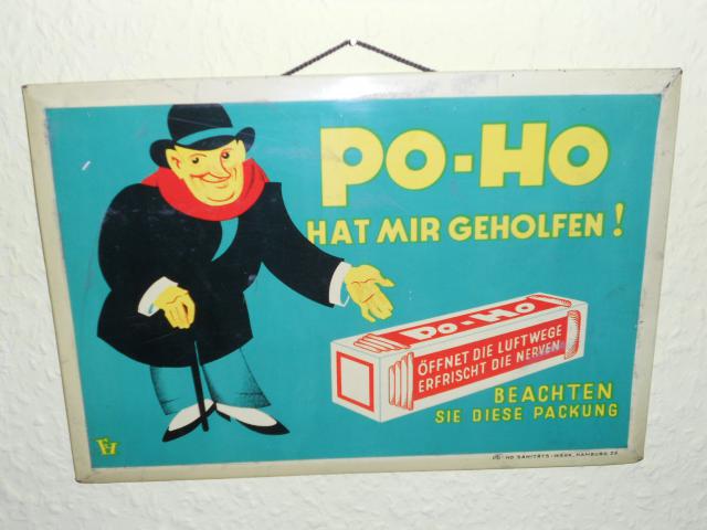 Dieses querformatige Blechschild unten konnte ich diese Woche bei ebay erwischen,wieder eine andere Signatur und nun ist der Mann mit Melone wieder gesund „Hat mir geholfen“ der Stock ist kleiner geworden und er sieht bedeutend gesünder aus. Ich finds toll. Signatur FH. Erfrischt die Nerven hört sich auch gut an.