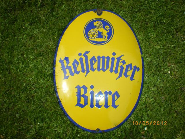 1. Reisewitzer Brauerei 45 x 60 ; Zustand 1,0 ; Emailie gewölbt schabloniert ; Preisvorstellung: 110 Euro