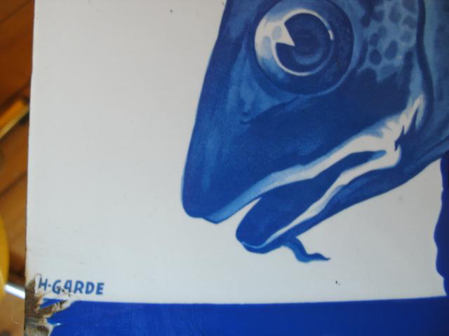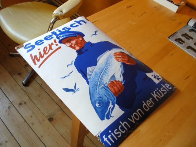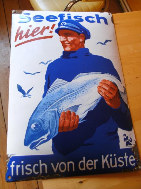 Nur so nebenbei bemerkt hatte die Firma “Nordsee” in der Zeit als dieses Schild produziert wurde circa 128 Läden in Deutschland und 32 in Österreich.Ob das nun den Schluß zulässt das an jeder Verkaufsstelle so ein Schild hing?? Vielleicht. Wie hoch dieses Schild verkauft wird oder ob der Verkäufer vorher abbricht ist doch komplett egal.Mich würde viel mehr interessieren wer H.Garde war und ob er noch andere Entwürfe gemacht hat.