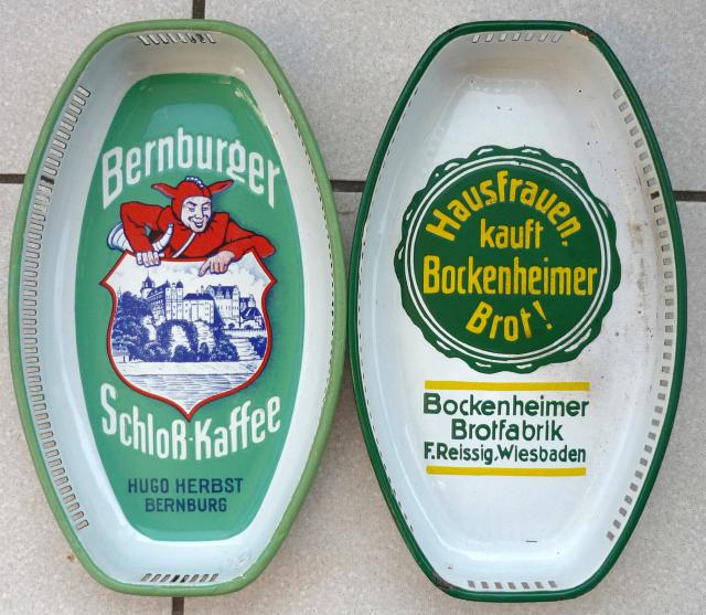 aufgrund des Aufrufs eines Sammlers hier im Blog, habe ich mich zweier Schrippenschalen in meinem Sammelsurium erinnert und sie mal hervorgekrammt. Ich habe sie als „Schrippenschalen-Laie“ vor Jahren mal auf einem Flohmarkt gekauft, weil ich von dem sehr günstigen Preis verführt wurde. Falls der Sammler Andre oder auch sonst noch jemand Interesse hat, kann er sich gerne bei mir melden. Zum Preis kann ich leider nichts sagen, da hoffe ich auf die Fairness des Käufers.