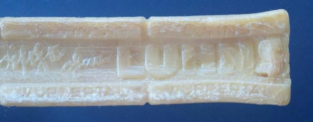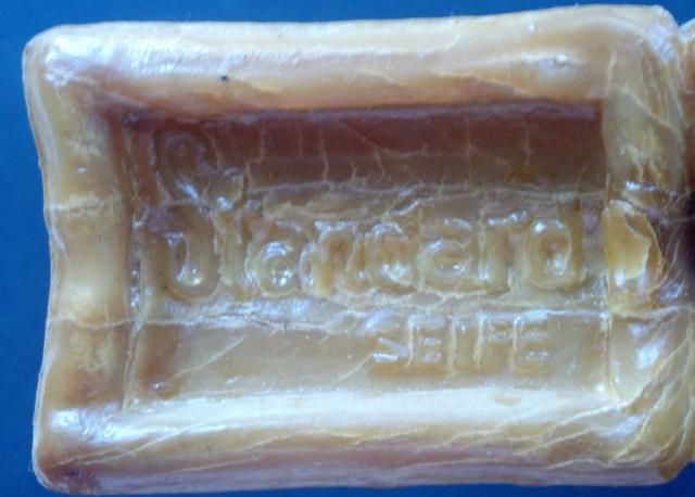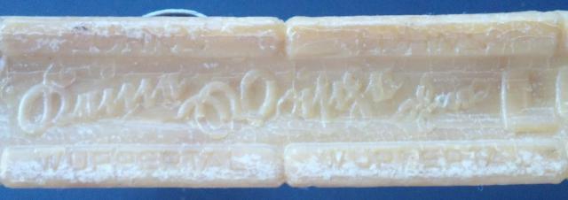 Dann hatte ich einmal glück, auf einem Flohmarkt tauchte eine Hamsterkiste auf. Darin fand sich einiges an Seife. Ein Teil ging an den Heimatverein, da bastelte man gerade an einer Ausstellung zum Thema Wäsche. Ein paar stücke blieben bei mir. Die schönen gingen in die Vitrine, die anderen wurden verbraucht.