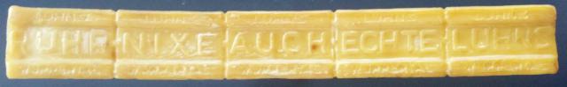 Aber auch die Standart-Seife mit einer 5000 M. Bürgschaft für Reinheit ist nicht von schlechten Eltern.