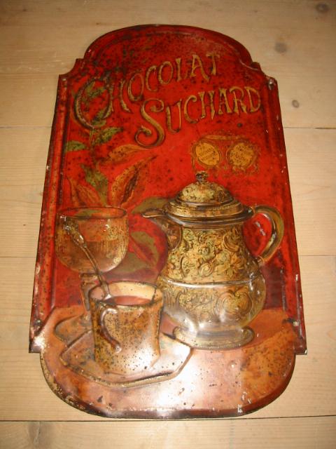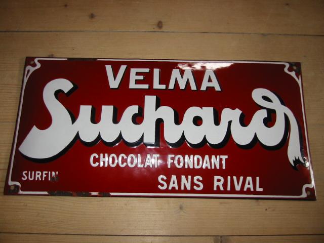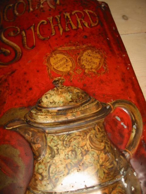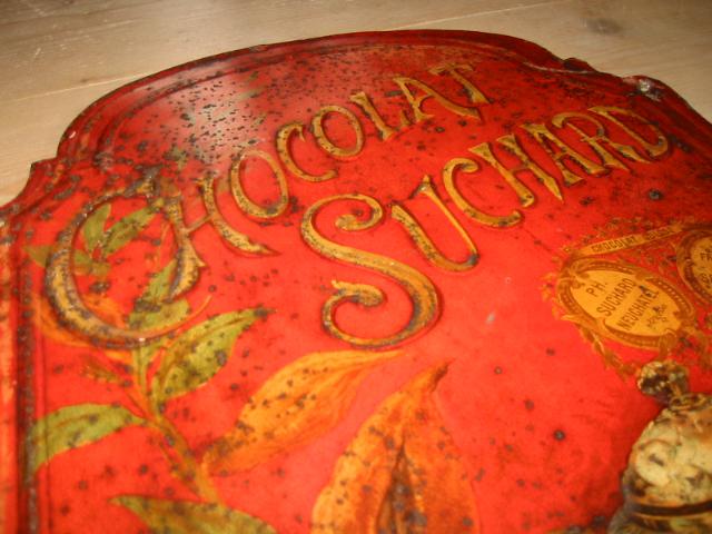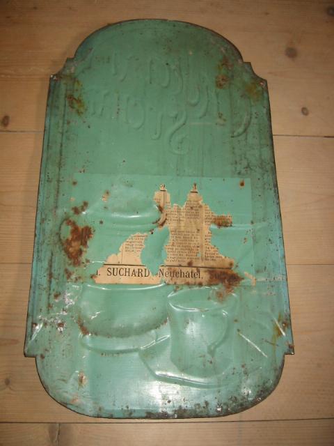 dann ein wenig email….. suchard velma …en vente ici, kannte ich so nicht, frankreich um 1900-1910 minimalste jugendstielelemente in den ecken… paar emailierfehler