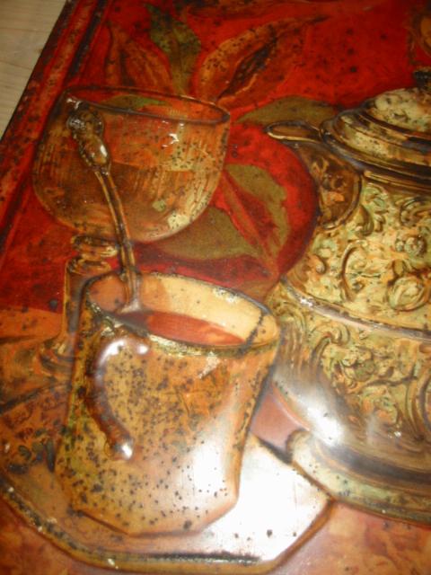 recht düsteres frühstücks cacao blechschild wohl um 1880-1890 in wirklichkeit sind die farben besser als auf den bilder….