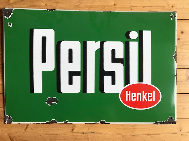 Angebot: Frischfund 2017, altes Emailleschild um 1928 Persil Aber Tantchen, Düsseldorf/ Deutschland,mit das schönste Schild von Persil