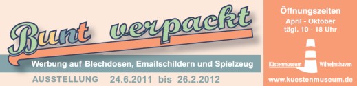 Wilhelmshaven – Kaffee, Kakao, Tee – darf´s ein bisschen mehr sein? Wie in einem Kolonialwarenladen fühlen sich die Besucher der neuen Sonderausstellung „Bunt verpackt – Werbung auf Blechdosen, Emailschildern und Spielzeug“ im Küstenmuseum Wilhelmshaven. Mit dem Duft von Kaffee und exotischen Gewürzen in der Nase erleben die Besucher einen unterhaltsamen Ausflug in die bunte Welt der Werbung vom Ende des 19. Jahrhunderts bis Mitte des 20. Jahrhunderts.