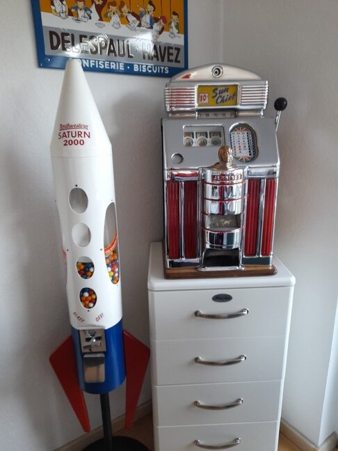 Verkauft 1 Vendo 44, 1 JENNINGS Sun Chief, 2 Saturn 2000 Raketen, 2 Ford Glocken, 2 PEZ Automaten, 1 Hot Nuts Automat, 1 Neon.