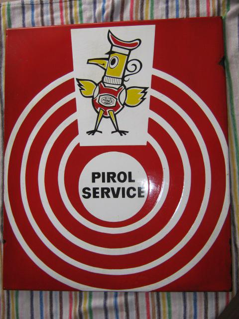 hier ein Foto von einem Minol Pirol Service Werbeschild. Es soll wohl sehr selten sein. Der Zustand ist nicht ganz Mackenfrei. Am Rand hat es ein paar Roststellen und auf dem Schild selbst minimale Kratzer. Hinten hat es auch leichte Roststellen.