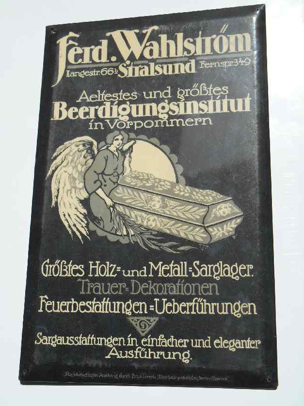 Kleines gewölbtes Format, sehr seltene Reklame aus Pommern, Stralsund, Mecklenburg.