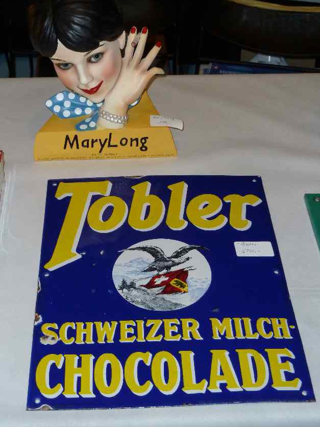 In den Anfängen des Sammelns alter Reklame war das Schild immer mal wieder zu haben, inzwischen wurde es rarer und ist in gutem Zustand nur noch schwer zu finden. Wie die meisten Emailschilder ist es in natura wesentlich „strahlender“ und lebendiger, als auf Papier reproduziert. Es ist in grossen Teilen schabloniert, das faszinierende Relief ist gut sicht- und spürbar.