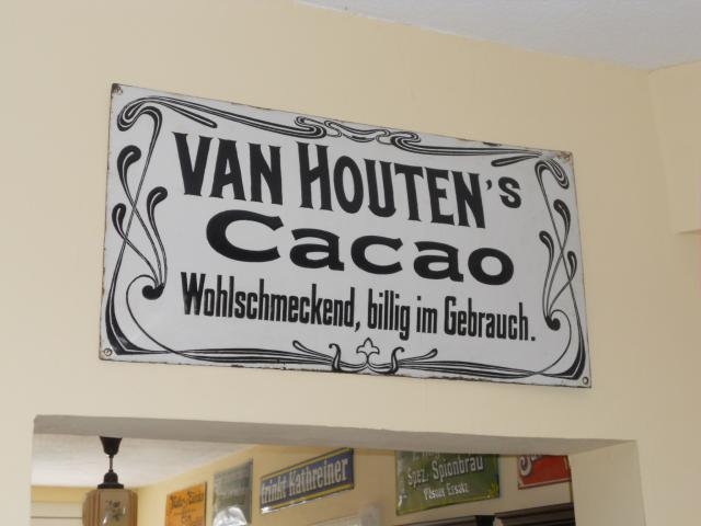 Das Schild ist aus der Zeit als Schokolade erst aufkam und Cacao noch in Drogerien sehr teuer verkauft wurde. Van Houten hat viele Patente zur Cacao und Schokoladen- Produktion angemeldet, so dass er heute in der Schoggi Produktion nicht wegzudenken ist.