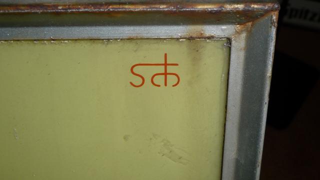 Blech Ausleger/ Deutschland/Frankreich um 1925/ ca. 45 x 30 cm/2 Seitig, auch verwendbar direkt als Wandschild/ leichter Flugrost am Rand, sehr gute Farben/ unrestauriert/ außergewöhnlich selten