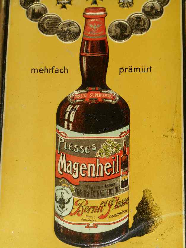 Angebot: Blechschild, Magenheil Kräuter Likör, Geestemünde um 1900, sehr frühes historisches Schild für die Küche
