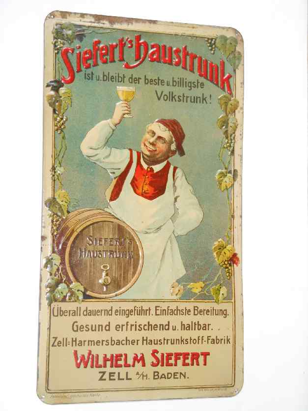 Blechschild/Zell um 1910/flach geprägt/Rob Müller Fürth/44 cm x 24 cm/ Zustand 1-2/ unrestauriert