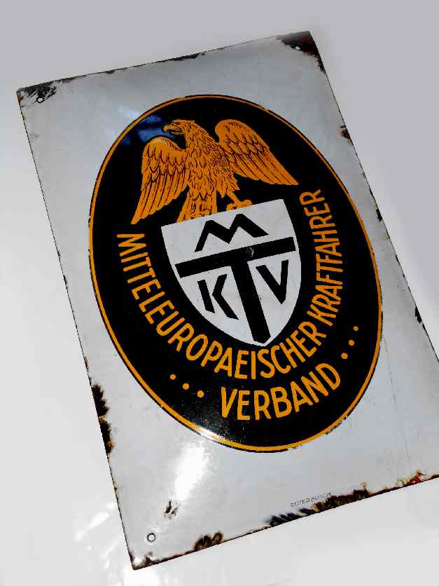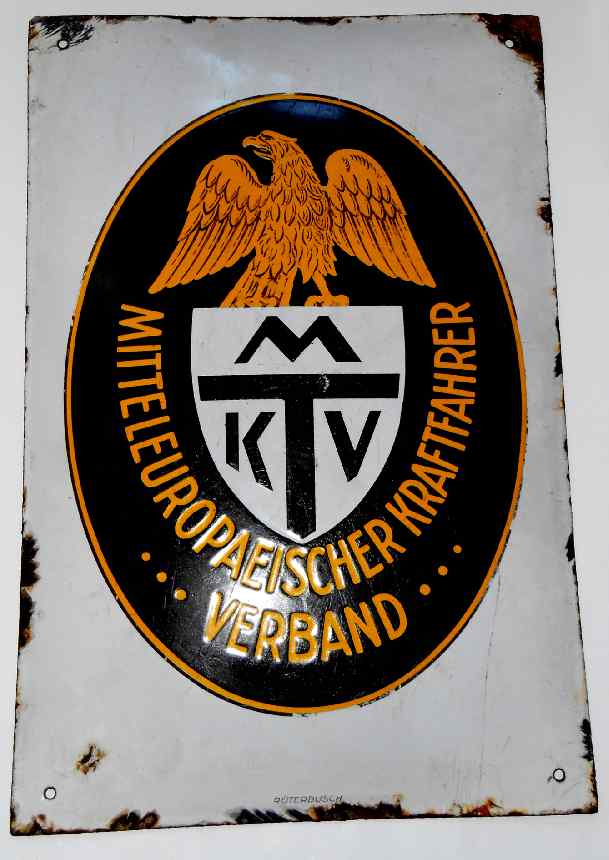 Emailleschild/ Deutschland um 1925-35/ 50 cm x 30 cm/schweres schabloniertes Schild, gewölbt/Zustand 2-, Gebrauchtspuren auf der Oberfläche / signiert RÜTERBUSCH/ Sehr selten
