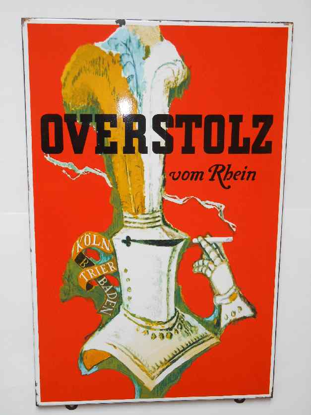 Angebot: Emailschild, Overstolz Zigaretten, Deutschland 1950, Künstlerentwurf