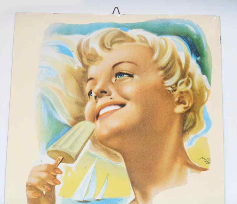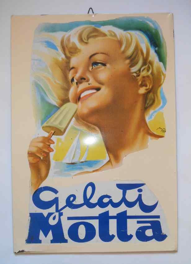 Aus einem italienischen Eisladen geborgen. Der berühmte Künstlerentwurf von Mario Rossi als Blechplakat !!!