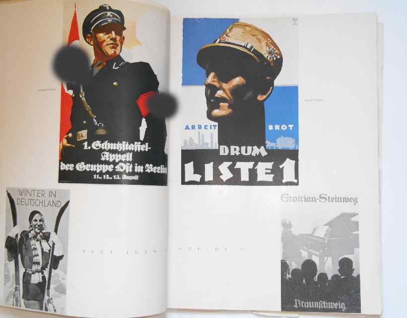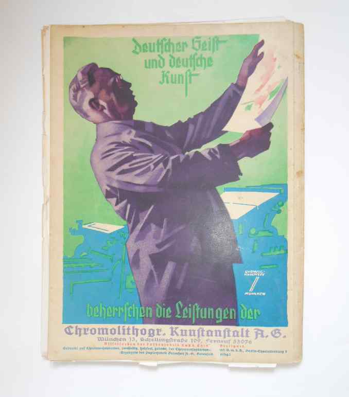 Alte Reklamezeitschrift über Ludwig Hohlwein mit zahlreichen Entwürfen in Farbe und monochrom aus dem 3. Reich. Propaganda.