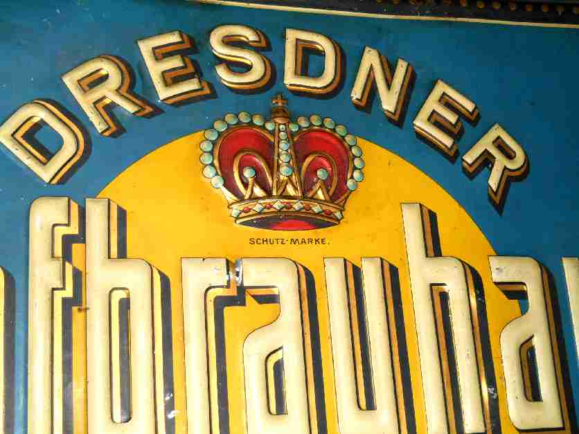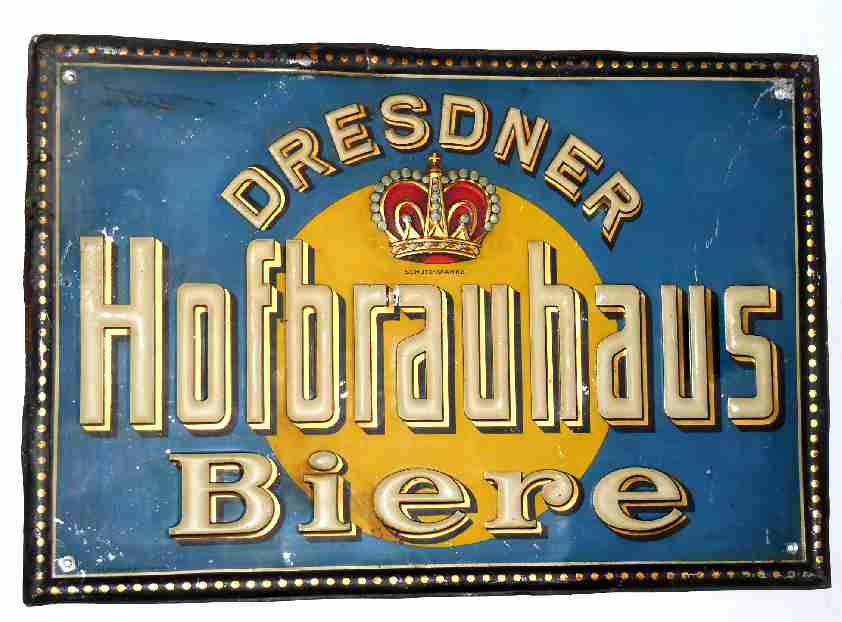 Blechschild/Hofbrauhaus Dresden/ Deutschland um 1900/schwer und stark geprägt/52 cm x 36 cm /Zustand 1-2/Hersteller: Heyne und Schreiber Dresden/unrestauriert/ äusserst selten