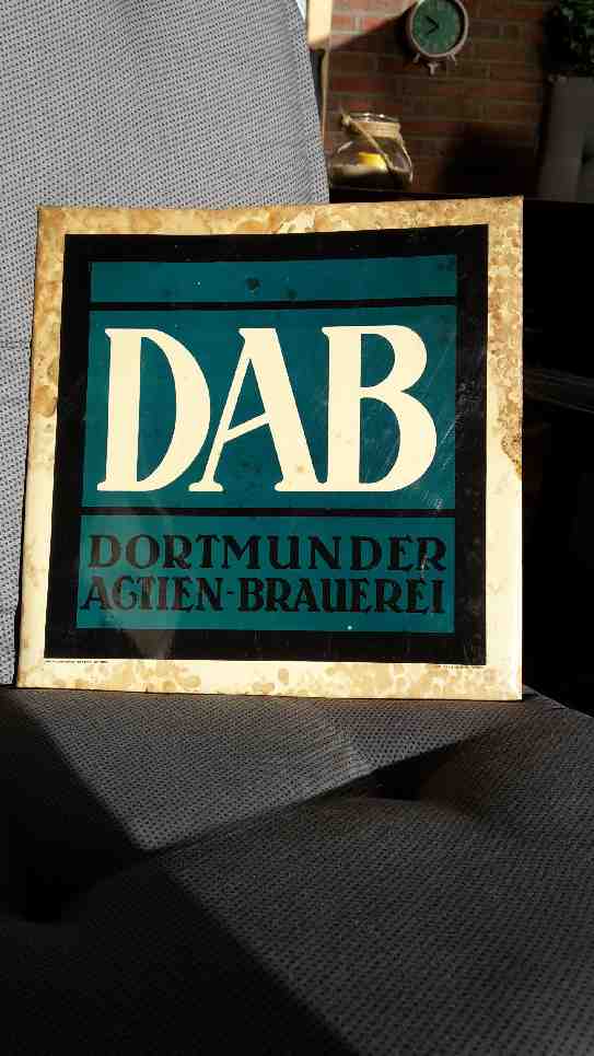 sowie ein Imoglasschild DAB Dortmunder Actien Brauerei, hergestellt von