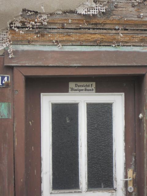 Dieses pissige Hundschild wurde an der Tür belassen.