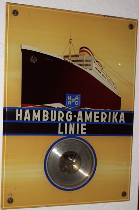 HAPAG Glasschild mit Barometer der „Hamburg-Amerika Linie“