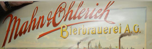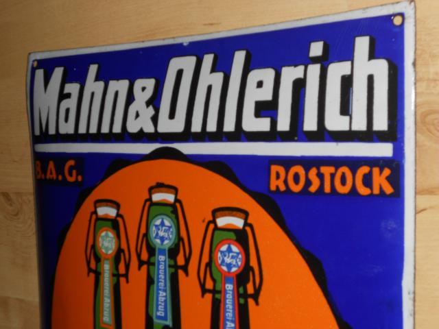Abbildung: Markenzeichen ;Mahn und Ohlerich Brauerei Rostock, 1930, Hersteller Pyro -Email, Zustand 1+, dm ca. 80 cm, schwer auch ohen Bleikabel, 🙂