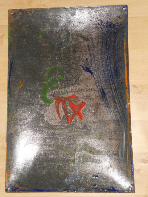 Emailleschild/ Deutschland um 1925/ 40 cm x 10 cm/ lithografiert/ Zustand 1-, Top Farben und Glanz/ unrestauriert, Flugrostverfärbungen am Rand evtl. putzbar/ sehr selten zu bekommen, helle Flecken sind vom Blitz.