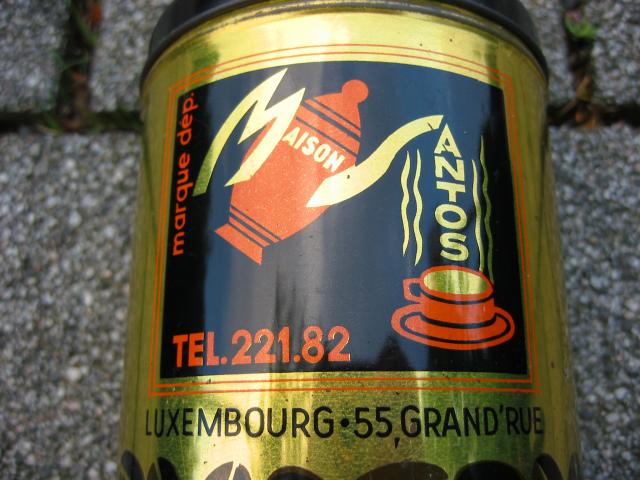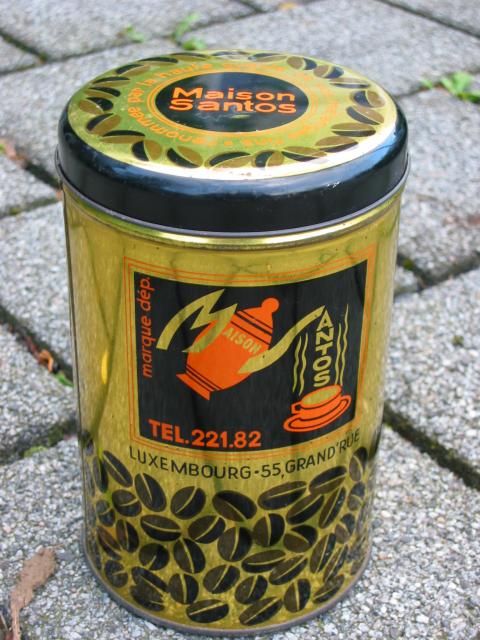 Ich finde es immer besonders klasse, wenn Buchstaben zum Bestandteil des Motivs werden (wie beim kürzlich gezeigten Marchall siehe http://www.schilderjagd.de/?p=7362 ). Hier ein weiteres Beispiel von einer Kaffeedose „Maison Santos“, die ich für den „völlig überzogenen Betrag“ von 25 cent am Wochenende gekauft habe – das „M“ ist der Griff und das „S“ ist der Ausguss der Kaffeekanne – und stellt Euch vor, der Verkäufer wollte nicht weiter im Preis runtergehen – unverschämt, ich geh nicht mehr zum Flohmarkt – nur noch Wucher 😉