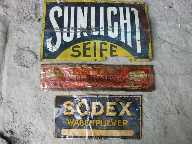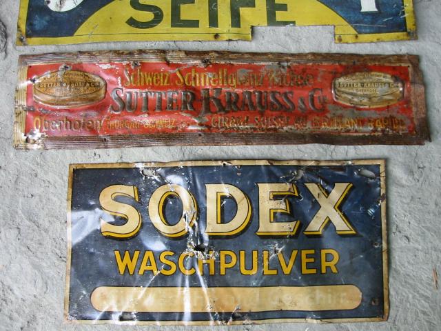 gestern noch kurz beim alteisenhaufen zwischenstop gemacht 🙂 leider kein emailschild weit und breit …aber…. da unten fast am boden unter dem eisen sehe ich das sodex blechschild 30×15 cm, gereinigt und mit öl aufgefrischt immerhin lesbar unten steht für wäsche und geschirr.