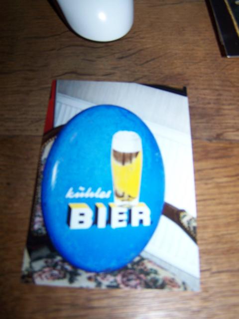 fiel mir heute dieses Foto entgegen , damals vor vielen Jahren kaufte ich dieses Schild als Emailschild, dann musste ich feststellen dass es ein dickes Blechschild war. Die weissen Schlieren bzw. Ausbleichungen konnte ich nie wegputzen. Konnte man auch nur in den 50er machen, solche Bierschilder genauso wie Emailschilder herzustellen. ich sag mal optische Täuschung.