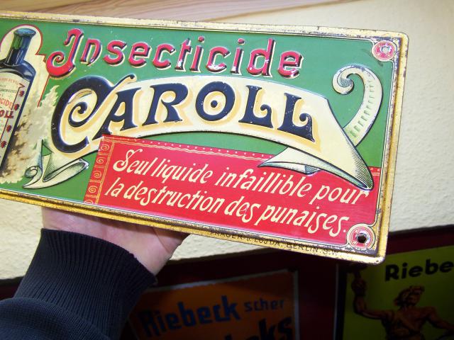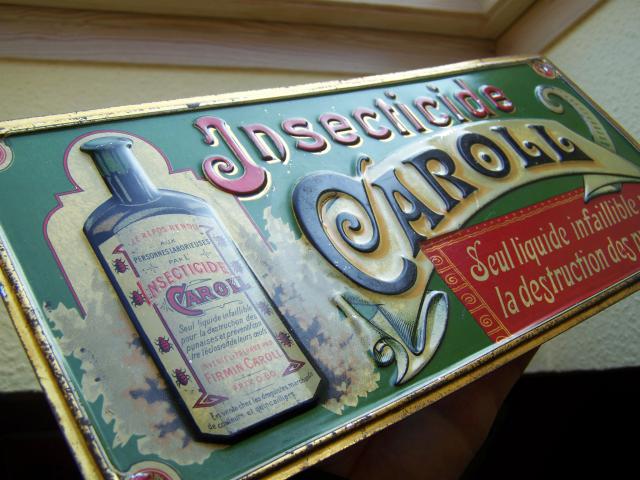 Auf Grund meiner aggressiven und “ jedes Mittel ist mir recht Taktik zur Erhaltung der Natur und Umwelt“ gehört zu meinem Lieblingssammelthema „Insektenvernichtung und ihre Schilder“. 🙂 Letzte Woche konnte ich von einem Schilderhai aus Aachen- auch reviersteiger gennant, dieses Schild nach harten Verhandlungen erstehen. „Du kaufen ?- ja ich will“ Schon am nächsten Tag war es bei mir angekommen. Man ist das ein schönes Teil. Obwohl franz. Schilder noch nicht so bei mir vertreten sind, freut es mich sehr.