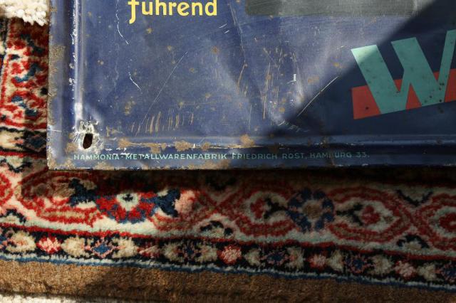 Der Rand wurde etwas beschädigt, trotzdem kein seltenes und kein Original Schild von Berger um 1920.
