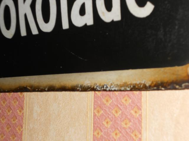 Ebenfalls dazugehörig das Schild der Wesenberger Schokolade, dicke Grundplatte mega Emaille drauf.