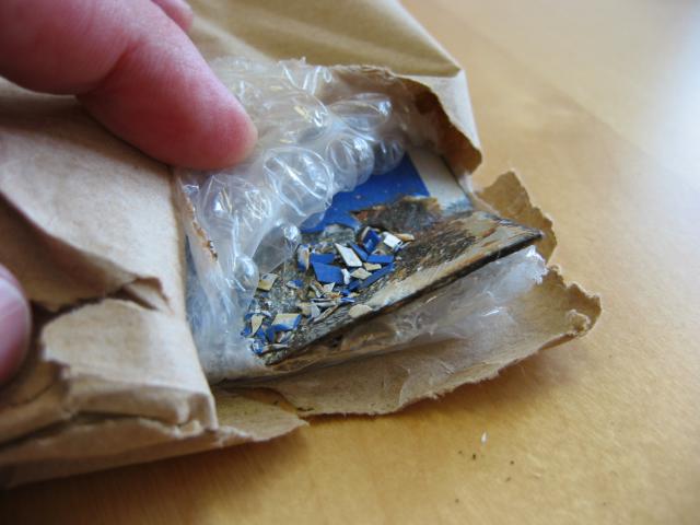 … leider Dauerthema und hier auch schon häufiger diskutiert. Schaut Euch mal diesen Wahnsinn an – obwohl ich den Verkäufer um sehr gute Verpackung und Polsterung gebeten hatte, kam das Schild (blaues Mergell Bier) in einer Lage dünner Blasenfolie und Papier ! Grrrrrrrrrrrrrrrrrrrrrrrrr !!! Ich glaube da hilft nur eine detailierte Verpackungsanleitung und/oder „der Pranger“ – z.B. den Typen im Eingang zur Reklamebörse anbinden mit einem Schild um den Hals „Ich bin ein Schilderschänder!“.