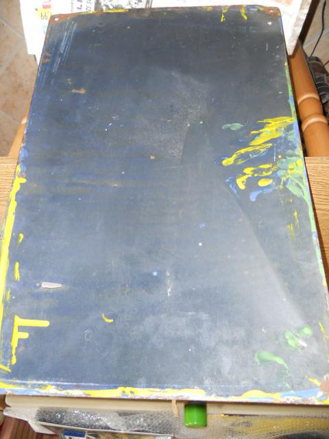 jetzt muss ich doch ein bild einfügen 🙂 …. moment…. dieses schild kaufte ich hochglänzend nach den bilder des verkäufers, als ich es auspackte waren grossteile mehr matter als matt…riesen diskusionen, ich habs dann ein wenig geölt und aufgemacht…aber sauber war’s nicht…. denn so wie es auf seinen bildern glänzte habe ich es nur gut gewässert hin gekriegt…. 🙁