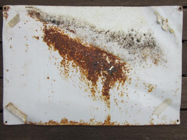 geborgen, das große Blechschild von Naumann mit der blauen Frau. Blechschild.