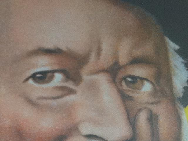 das Schild geht wieder ab wie eine „Tüte Mücken“. Das Bild ist eine Kanne mit einem Gesicht, die wahre Kunst liegt meiner Meinung nicht im Auge des Betrachters. Schöner grüner Hintergrund. 🙂