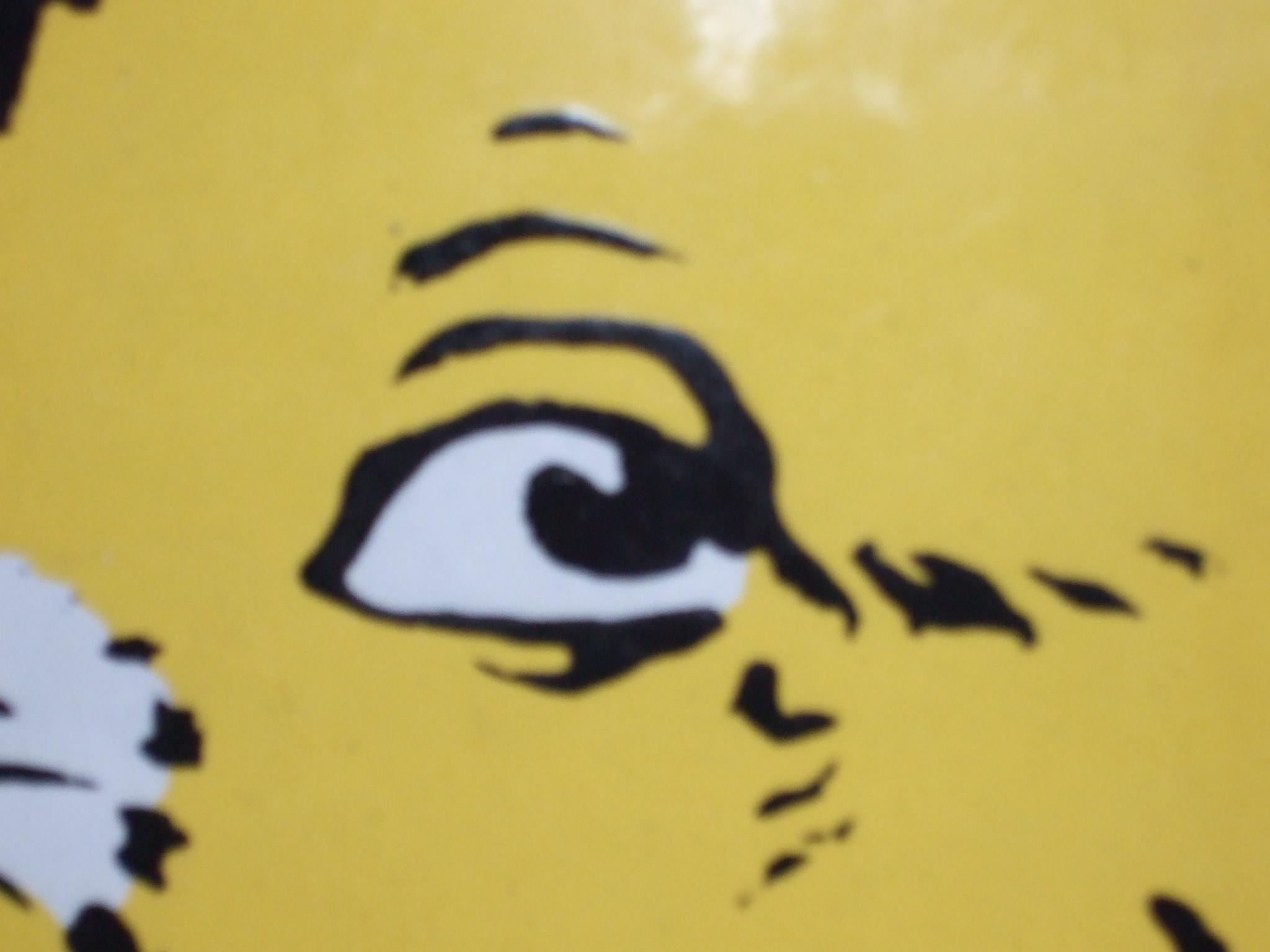 ohne diese tollen Augen, wirklich ein sehr altes Michelin Schild mit dem Männchen auf dem Fahrrad. Schönes Teil.