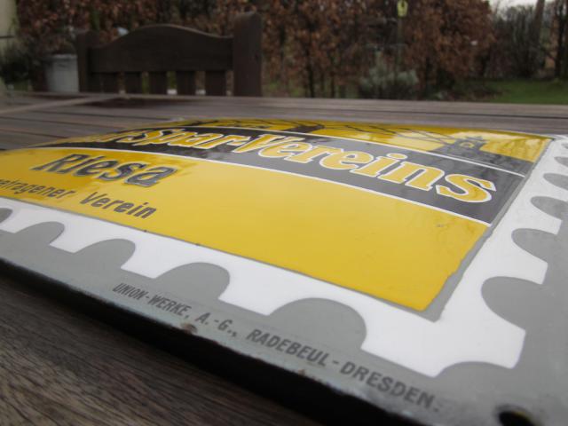 Diese beiden schönen Emailleschilder passen leider thematisch nicht in meine Sammlung und sind daher abzugeben – ich stelle sie demnächst in die „E-Bucht“ – falls jemand vorher Interesse hat, bitte im Laufe dieser Woche melden. Beide sind ca. 40 cm x 30 cm, gewölbt und schön dick emailliert. Das Polizeischild ist an den Ecken und am oberen Rand ein klein wenig übermalt (mit Abbeizer entfernbar): 180,- €. Beim Sparverein ist nix verschönert: 280,- €.