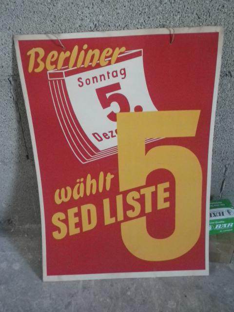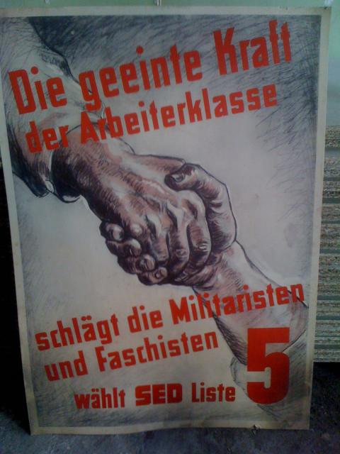 Desweiteren, sind noch SED Wahlplakate von um 1946 rum aufgetaucht. Bei Interesse sende ich Fotos.