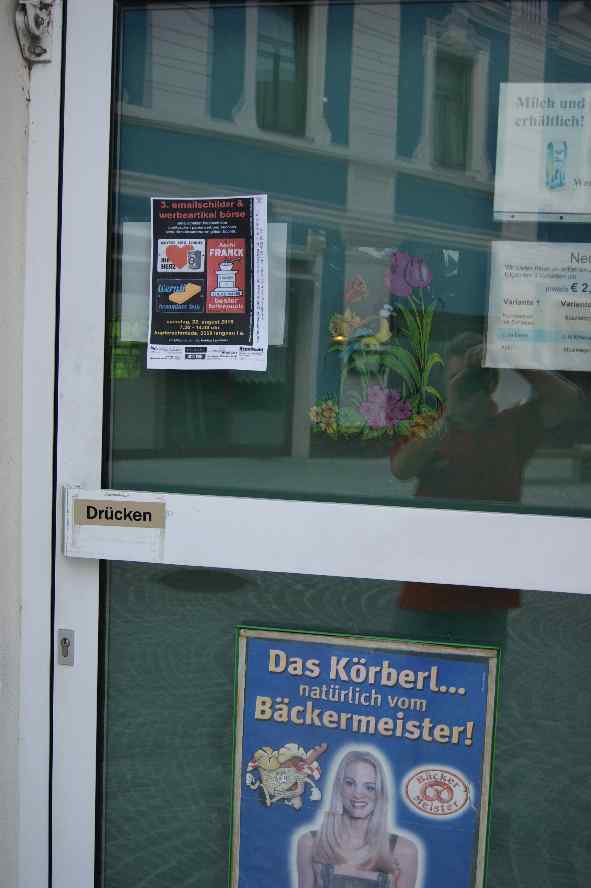2 monate später fuhr er wieder vor mit dem restaurierten maggi und dem gefunden vim….. 🙂 er war so stolz 🙂 ich lobte und merkte, jetzt möchte er sie eigentlich nicht mehr verkaufen… was ich wegen des zustandes unterstütze…… er erzählte noch…. wie sein vater mit einem grünen coca cola schild immer das wasser fass zum milch kühlen abdeckte…. aber das email verschwand in den jahren immer mehr… aber er habe noch paar gefunden, und er werde sie jetzt an einer türe aufmachen, und zu sammeln beginnen…. (mit knapp 72 jahren) er kaufte mir das worber apfelwein ab, da er diesen immer trank in seiner jugend….