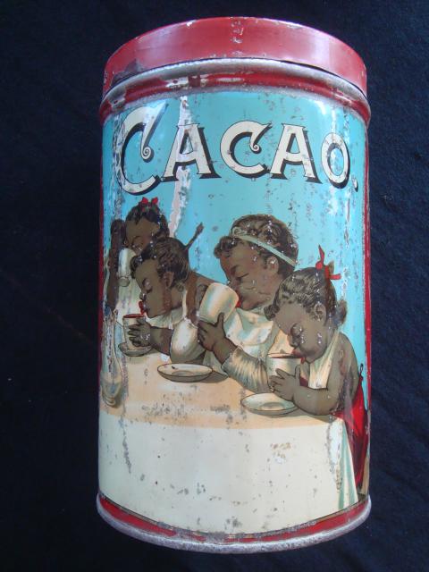 hier haben wir drei in einem. Kinder, Cacao und Jugendstil. Eine Dose die mir sehr ans Herz gewachsen ist. Erinnern mich die Rotzgören doch immer an die Stollwerck-Kinder. Mittlerweile gefällt mir die Büchse sogar besser. Leider hatte jemand darin irgendeine Farbe untergebracht, Die Raus und auch Runter zu kriegen war echt ein Problem. Aber mit Hilfe von Sohlenlöser ging es einigermaßen, zumindest hielten sich die Verluste in Grenzen,