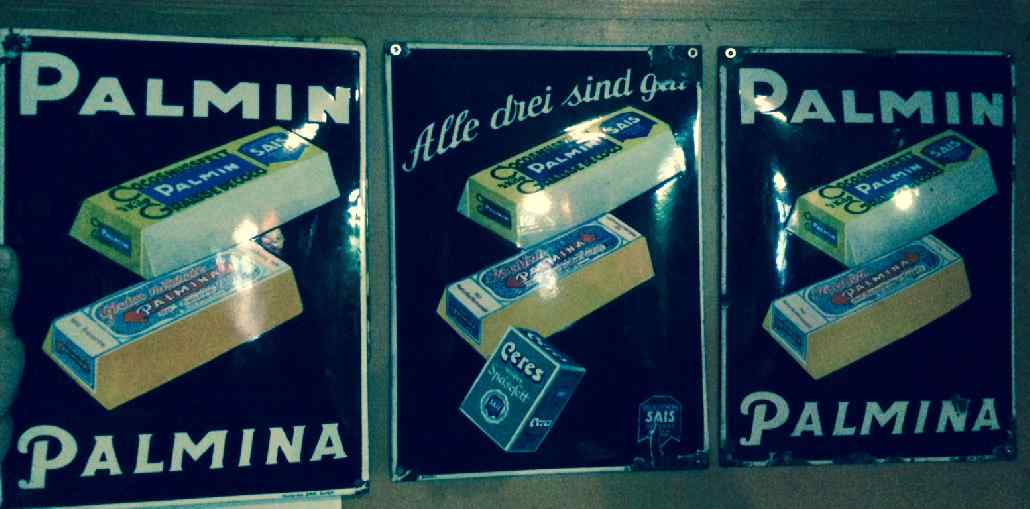 das miniwatt ist restauriert und wohl ein cassandre entwurf…. das potthässliche solothurner gasherde ist einemailierte aufsteller…. ich habe so einen schon mal irgendwo auf einem bild gesehen….. schrift dick emailiert…. die gesichter hausfrau und chefkoch doch eher ein wenig banal….