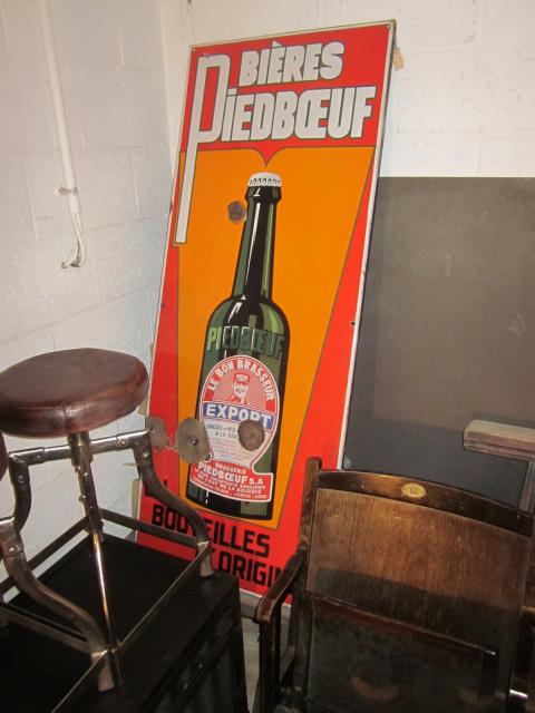 Gestern hatte ich irgendwie keinen Bock auf einen 4 oder 5 Uhr Wecker, obwohl es auch an diesem Wochenende wieder einige Flohmärkte in meinem Lieblingsjagdrevier Belgien gab. Also erst mal faul liegengeblieben, gemütlich gefrühstückt und dann spontan um 10:00 Uhr entschieden nach Brüssel zu düsen, um nach langer Zeit mal wieder die Antikläden zu durchforsten. Gegen halb-zwölf war ich im schönen-schummrigen Marollenviertel, dem Szeneviertel in Brüssel mit vielen Second-Hand-Läden aller Art, netten Kneipen und Cafes, kleinen Kunstgalerien und dem einzigen Flohmarkt Europas, der jeden Tag stattfindet, der „Jeu de Balle“. Um mal gleich damit anzufangen – nur wegen diesem Flohmarkt braucht man nicht dorthinfahren – sehr viel Zeug aus Haushaltsauflösungen und nur wenige Stände mit „richtigen“ Antiquitäten. Viel spannender sind die Antiquitätenläden auf der Rue Blaes und der Rue Haute, hier findet man massenweise Schilder, mit teilweise normalen und teilweise „anspruchsvollen“ Preisen. Auch mischen sich hier und da einige Repliken darunter (z.B. wußte ich bisher nicht, dass z.B. das Marchal-Service kopiert wird (siehe Bild)- ist aber recht leicht zu erkennen, da flaches Blech und flach emailliert). Auch manche Kneipen sind innen und außen mit Schildern bepflastert.