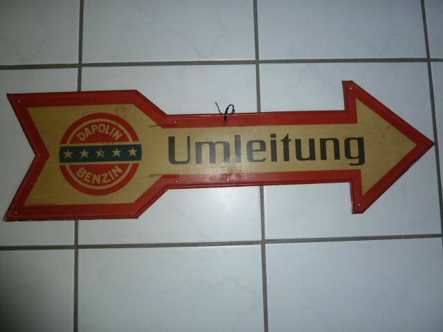 die tauchen abund zu auf.Dieser ist in wirklich schönem Zustand.20-er-30er Jahre.Das waren wirklich Umleitungsschilder.Hatte mal einSchild aus Emaillie dort stand „Strassensperrung“ drauf.Auch mit Dapolin Schriftzug.