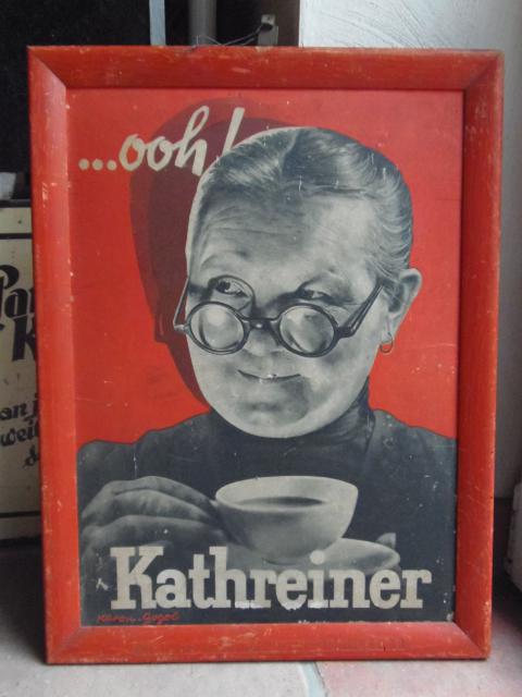 Heute beim Einpacken für den Antik- und Sammlermarkt morgen, Sonntag den 27.10. in Flensburg im Deutschen Haus 10.00 bis 16.00 ein schönes Plakat im Originalrahmen wiedergefunden. Unten eingeprägt: „Eigentum der Kathreiners Malzkaffe Fabriken GmbH“. Aber Oma bleibt zuhause. 🙂